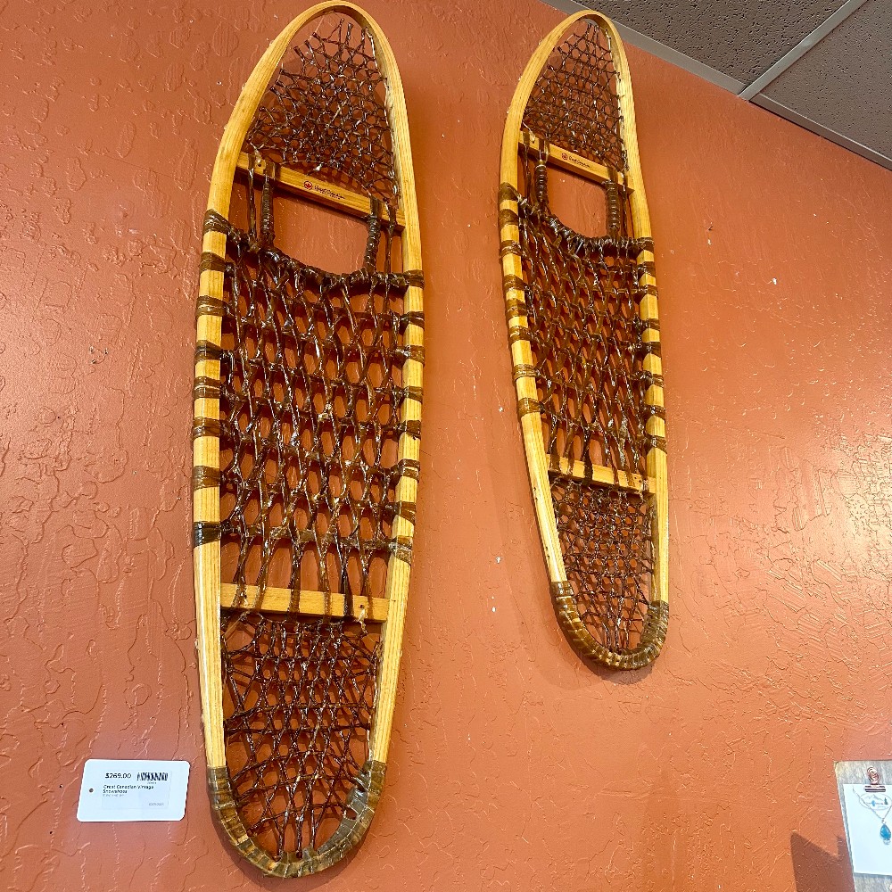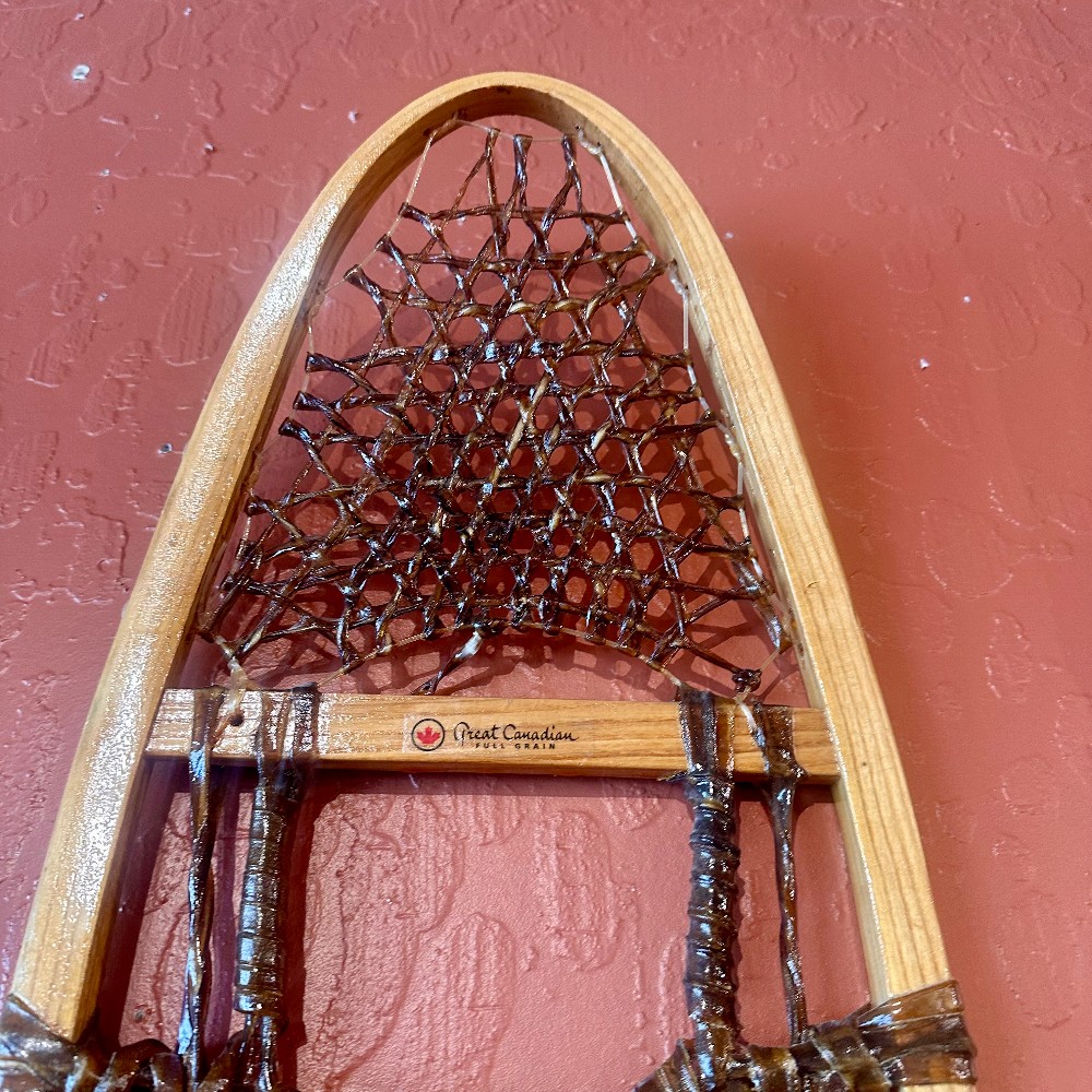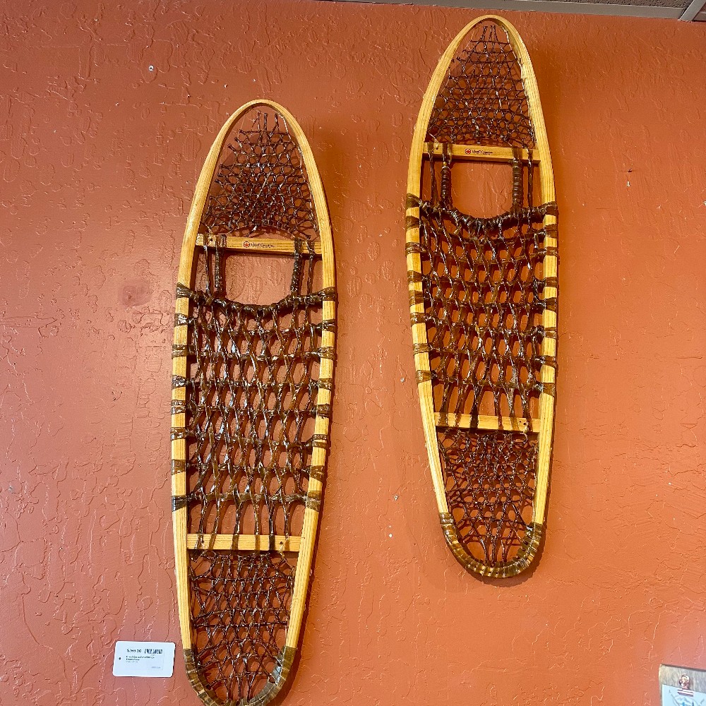 CONDITION: EXCELLENT. Gorgeous vintage showshoes from Great Canadian! Dark raw hide details.