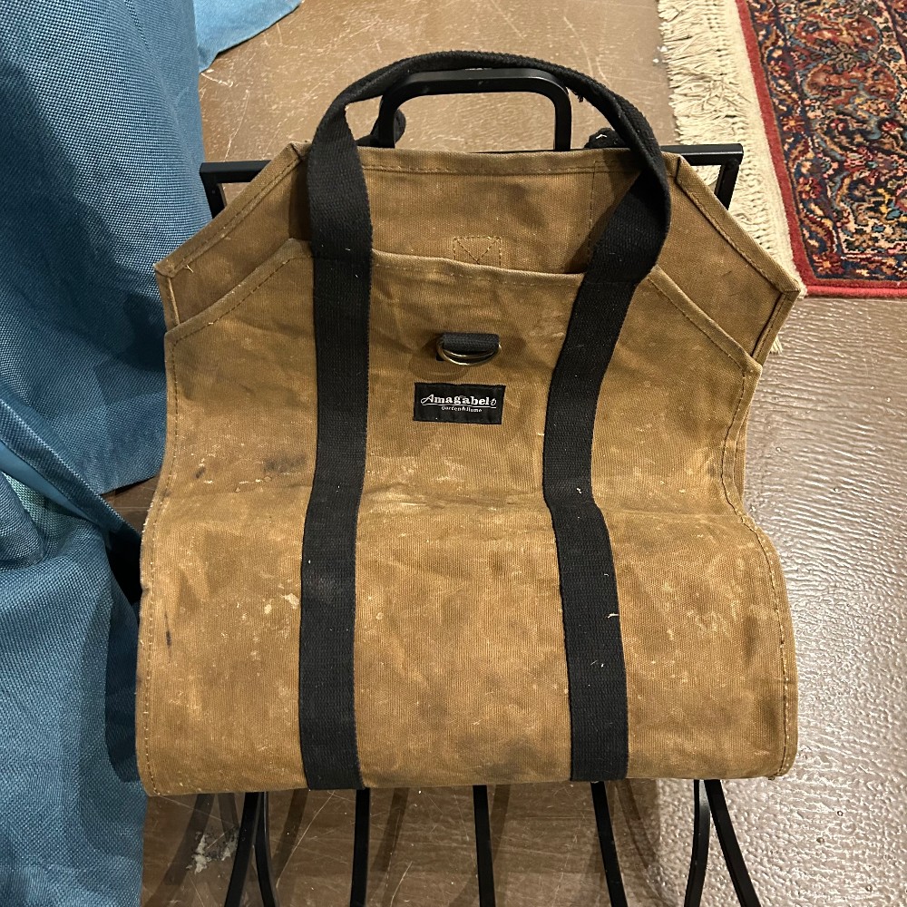 Home / Fireplace / Canvas Firewood Bag with Metal Firewood Holder